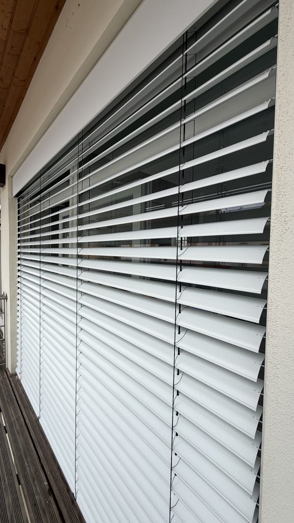 L’aluminium ROMA, que nous installons régulièrement, offre une durabilité remarquable et une précision d’orientation des lames qui améliore considérablement la gestion de la luminosité. Et parce que la manœuvre électrique filaire reste une valeur sûre, sans interférences ni complexité inutile, elle assure une utilisation simple, efficace et pérenne.